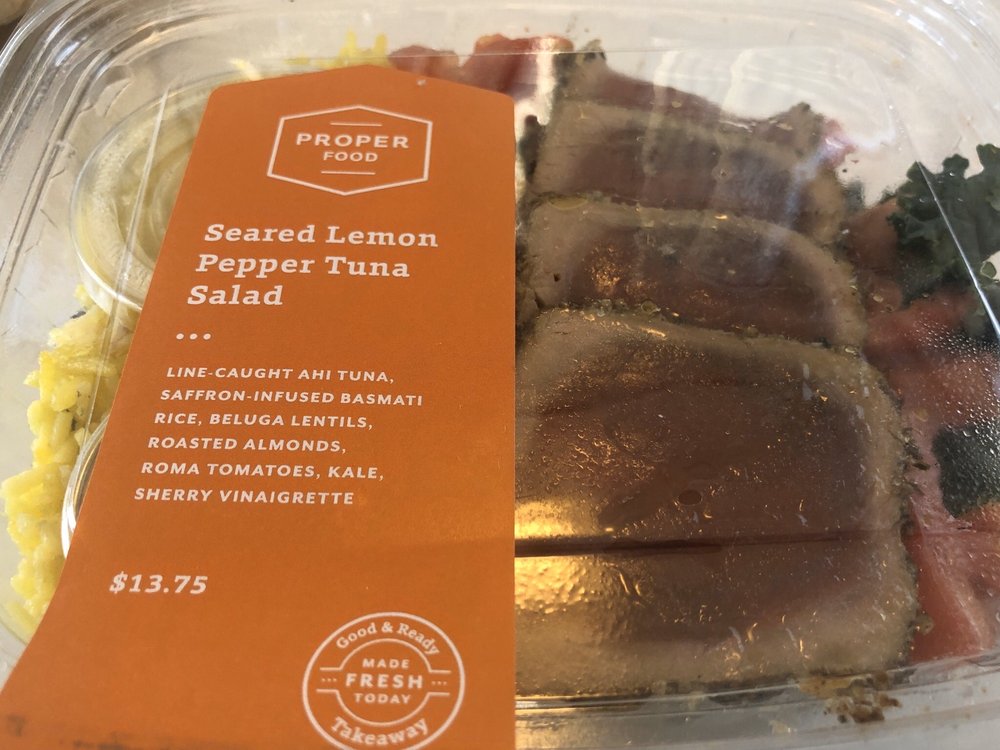 Ahi tuna, saffron-infused basmati rice, beluga lentils, roasted almonds, roma tomatoes, kale, sherry vinaigrette