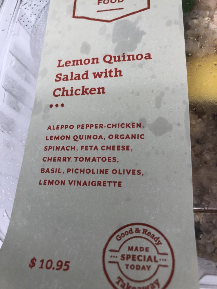 Lemon basil quinoa mix, cherry tomatoes, green olives, feta cheese, fresh chopped basil, organic baby kale, lemon wedge, house-made lemon vinaigrette